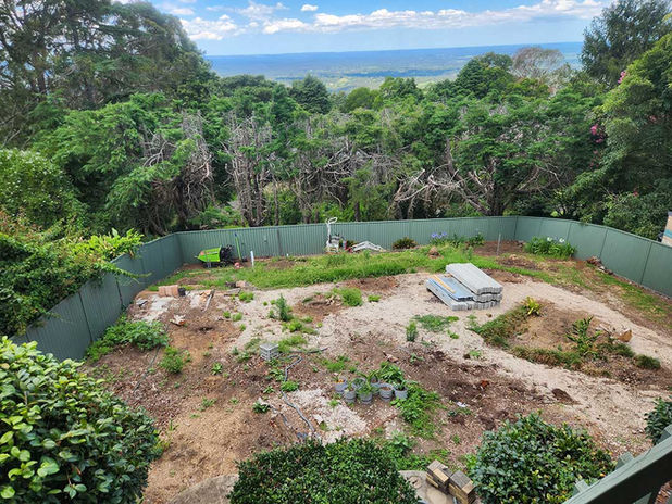We transformed the Bells Rest backyard in Kurrajong Heights from a sloped, underused space into a functional, multi-level outdoor area. Using a combination of plain and timber-look concrete sleepers, we built retaining walls, garden beds, and a dedicated tank area. Stairs and a fire pit were added to create inviting spaces, while pop-up sprinklers and full irrigation ensure easy lawn maintenance. Every element was carefully installed with our excavator and dumper, turning the backyard into a practical and welcoming retreat.