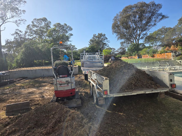 This Maraylya project involved excavating and levelling an uneven backyard where the ground was too high. Our team removed around 10 cubic metres of soil from the back yard and relocated it to the front, with our tipper trailer on-site to streamline the process. We then imported and spread 12 cubic metres of fresh soil to create a smooth, level surface, ready for the client to purchase and lay their own finish.